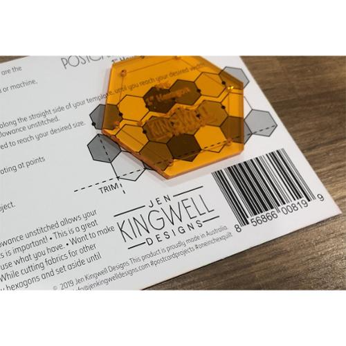 Sometimes the simplest of projects are the most effective. 1" hexagon template with quarter inch seam allowance lines and holes at corners for matching pieces. Can be made my hand or machine.
