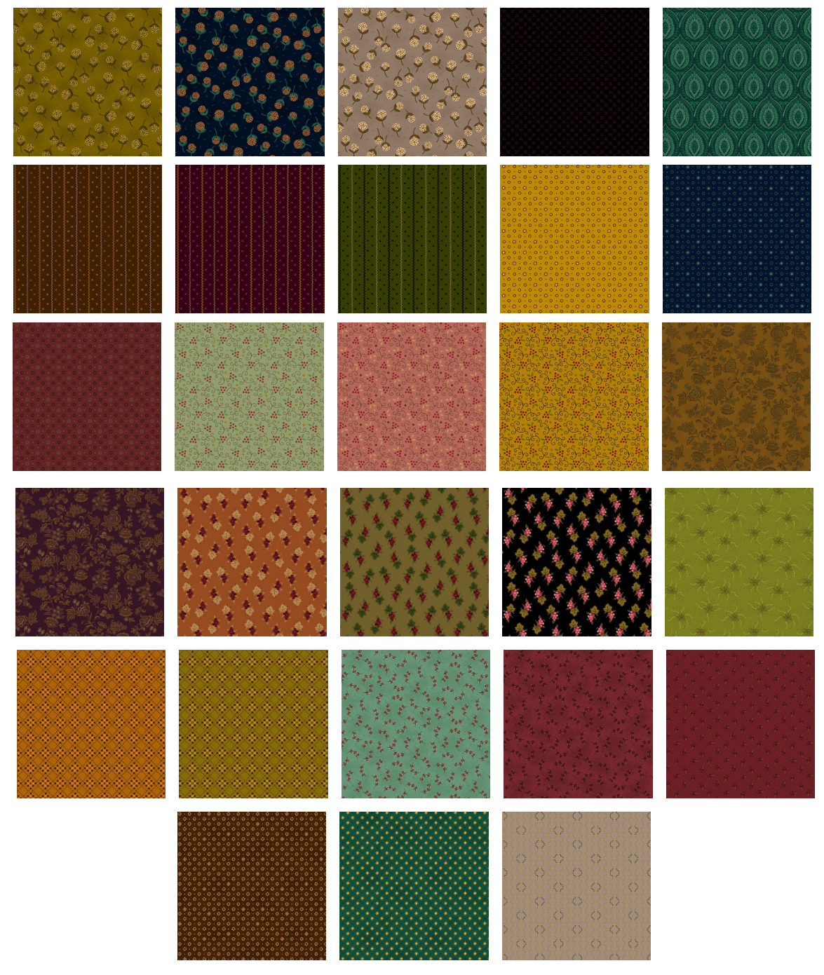 28 fabrics as pictured from Scraps of Kindness collection by Kim Diehl for Henry Glass Fabrics